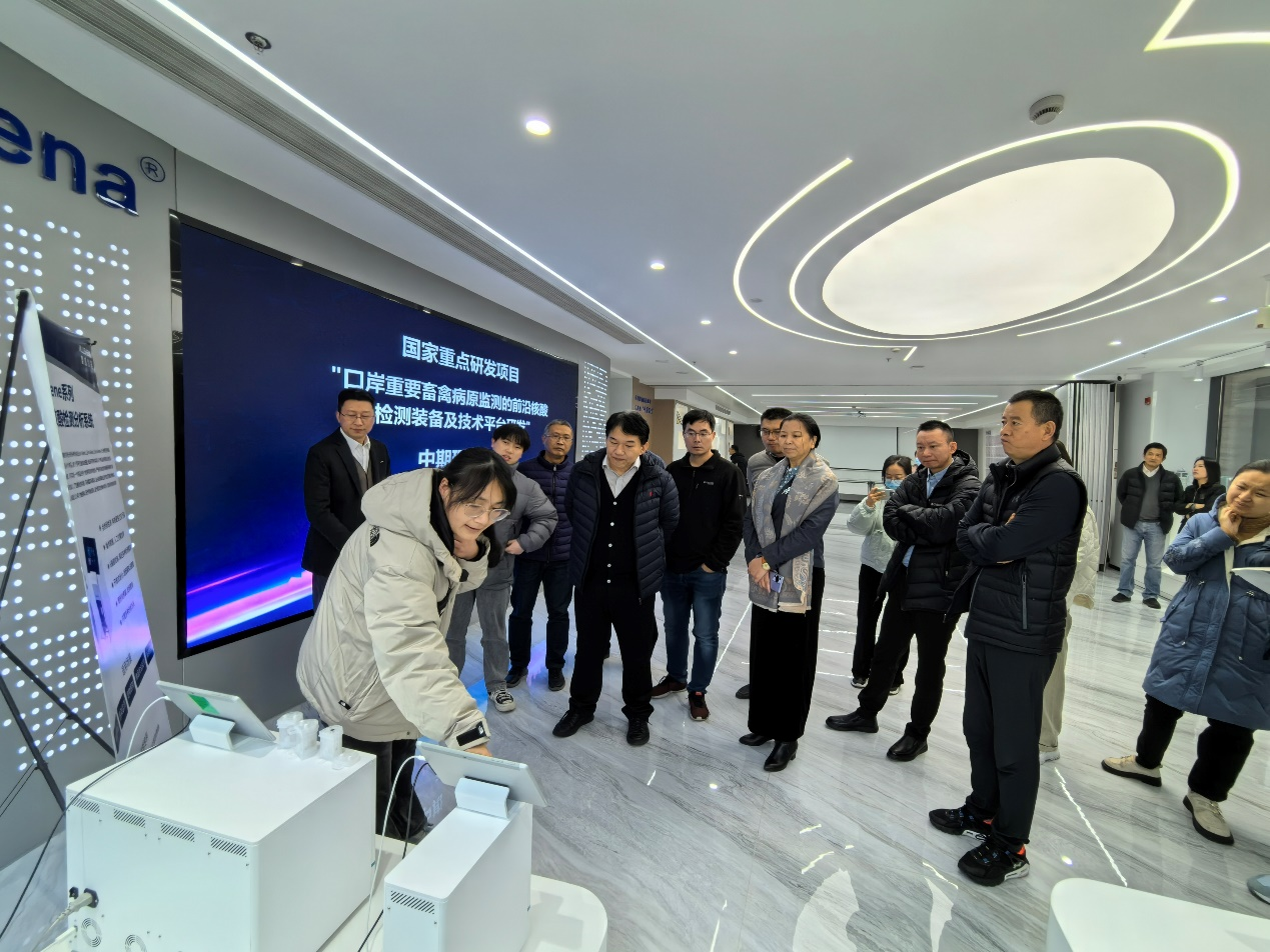 12月28日,由我单位主持的国家重点研发计划NQI专项项目“口岸重要畜禽病原监测的前沿核酸检测装备及技术平台研发”在杭州召开了中期检查会。由中国21世纪议程管理中心组建的八名专家组成的检查组现场对项目所研制装备进行了察看,并听取了项目执行情况介绍,审查了相关资料,经过质询与讨论,一致认为项目执行进度合理,按计划完成了中期考核目标。