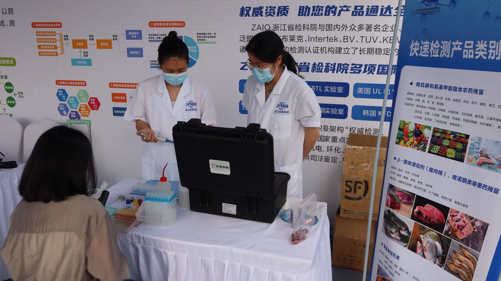 参展期间,省检科院联合跨境电子商务商品质量安全风险国家监测中心向消费者介绍跨境电商相关的法律法规、清关流程、消费注意等事项,同时设置跨境电商商品体验区,展示不合格产品、开展轻奢产品真伪鉴定、食品农残快检服务,并向消费者提供优质跨境电商产品体验。