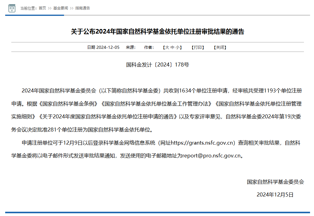 根据国家自然科学基金委员会发布的《关于公布2024年国家自然科学基金依托单位注册审批结果的通告》(国科金发计〔2024〕178号)文件,浙江省检科院获批为国家自然科学基金依托单位,具备独立申报和承担国家自然科学基金项目的资格,标志着省检科院在国家级科研项目依托平台建设上取得新的突破。