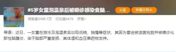 近期,福建、安徽的家长分别在网络上发帖称,孩子感染了“食脑虫”,目前病情均不佳。