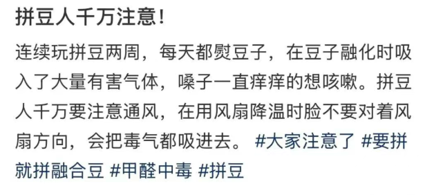很多人在熨烫“拼豆”时,会闻到一股刺鼻的气味,甚至有人出现发烧、面部过敏等反应。小心,你可能“中毒”了!