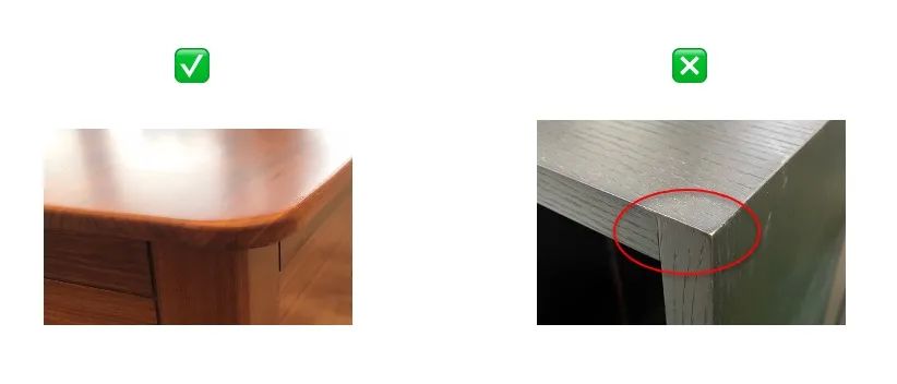 对于桌子椅子,当使用者坐、靠、躺时,直接接触使用者的部件(如椅座、靠背、扶手)应经倒圆或倒角处理;使用时能直接接触到座椅和桌子的任何其他的边、角,应无毛刺、尖锐边。