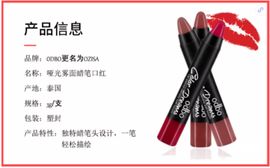 该口红被检出我国化妆品安全技术规范(2015版) 禁用色素“颜料红53:1 (CI 15585:1)”。大部分国家都明确将该色素列为化妆品禁用成分。