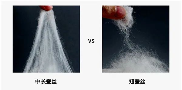 中长丝绵:以蚕茧或缫丝加工的副产品为原料经过机械加工而成的填充物纤维,蚕丝长度基本在20cm以上。