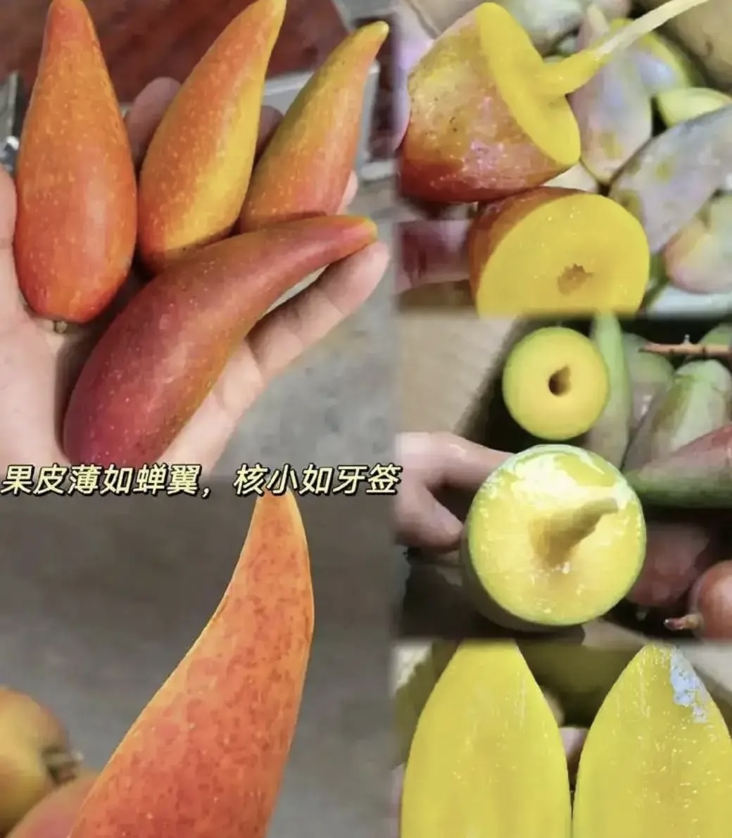 辣椒芒:号称“果核细如牙签”,只凭这一点就让“芒果控”疯狂上头,但真相是!!!辣椒芒是贵妃芒果树上,发育不良的畸形果,因光照不足、生长环境差等原因导致芒果个头偏小,果核也小,有的呈牙签状