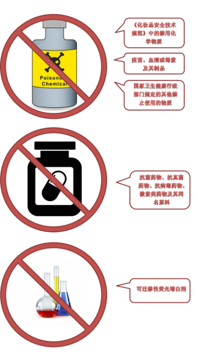 ➤ 列入《化妆品安全技术规范》 的禁用化学物质;